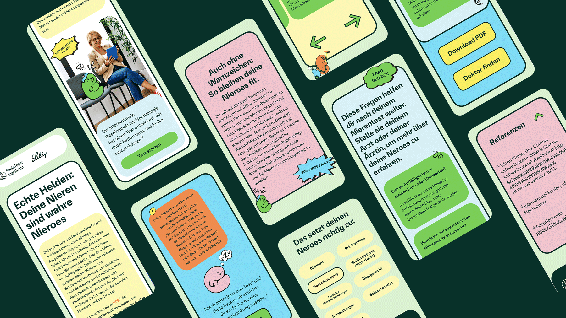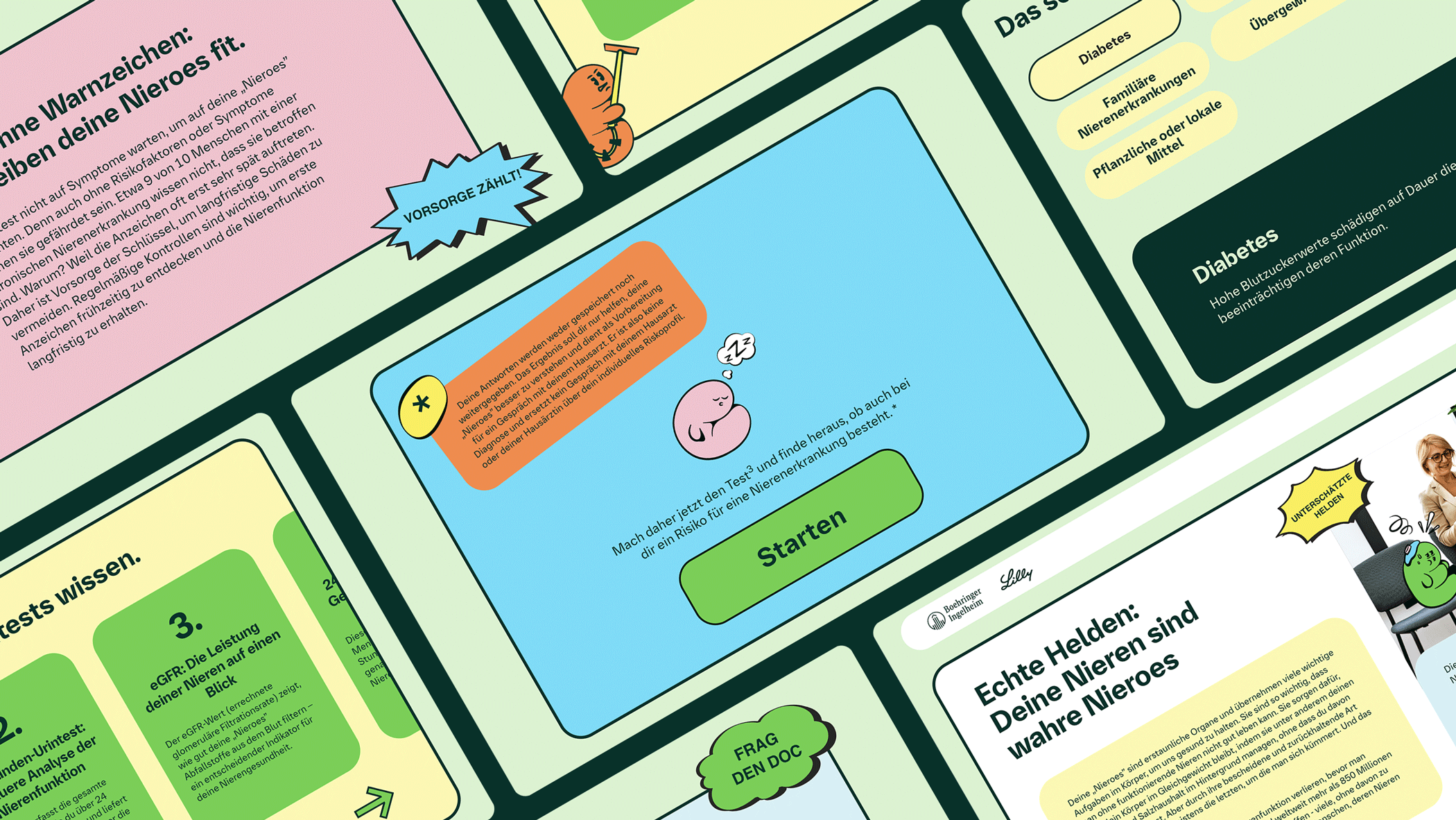 For their Kidney Health Awareness Campaign we developed an information hub Landing Page with a quiz that engages users to listen to their bodies and learn more about preventive measures. Starting with print flyers in doctor’s offices, clinics, and a social media targeting campaign, the user is redirected to the Landing Page where, after gathering information, they can download a couple of questions to ask their doctor and/or book an appointment via a doctolib link.
