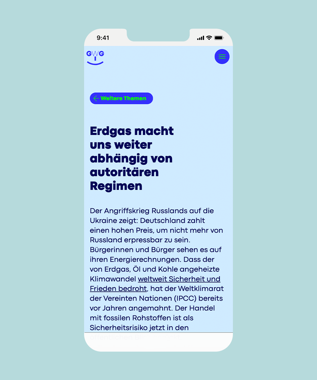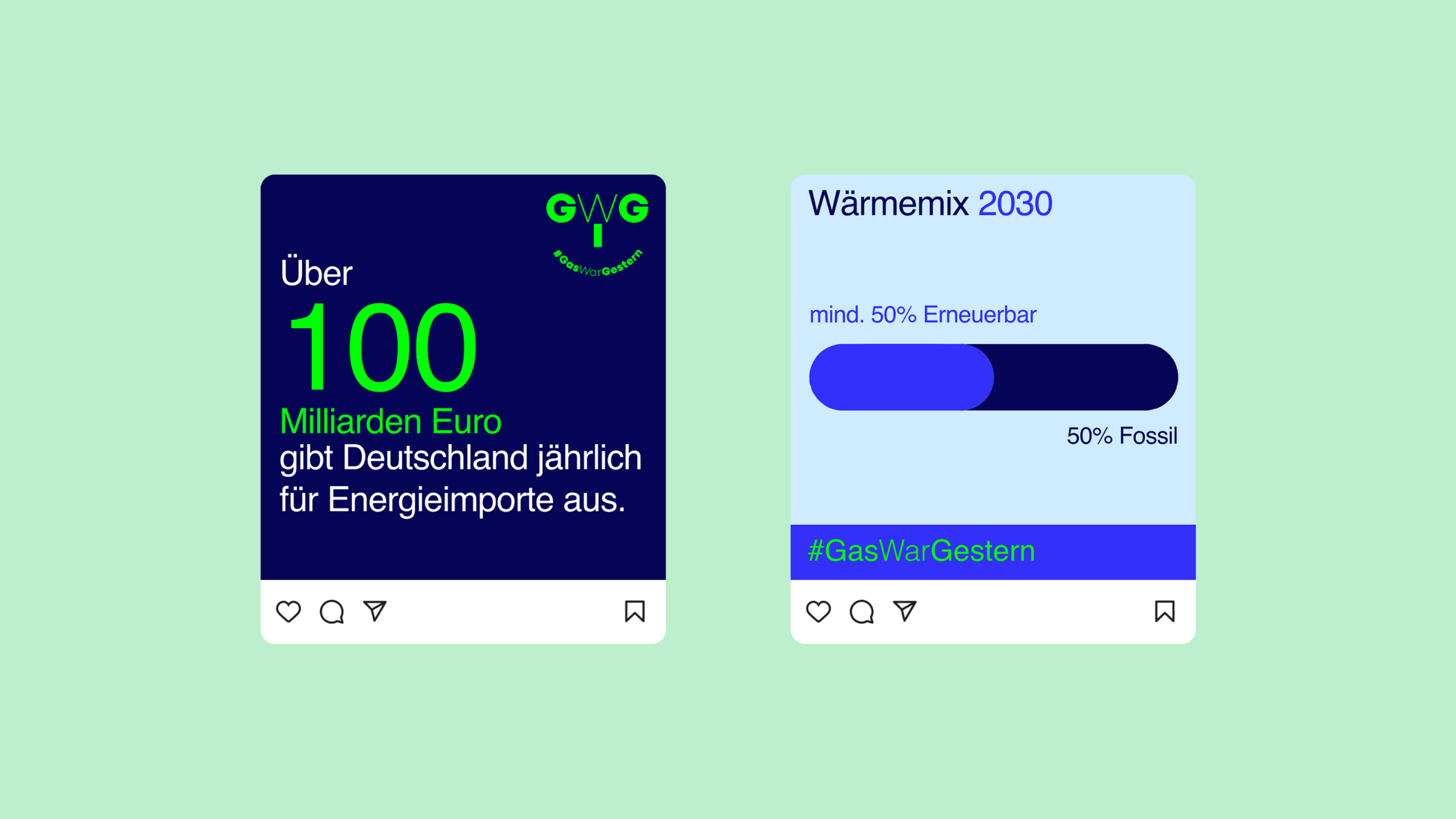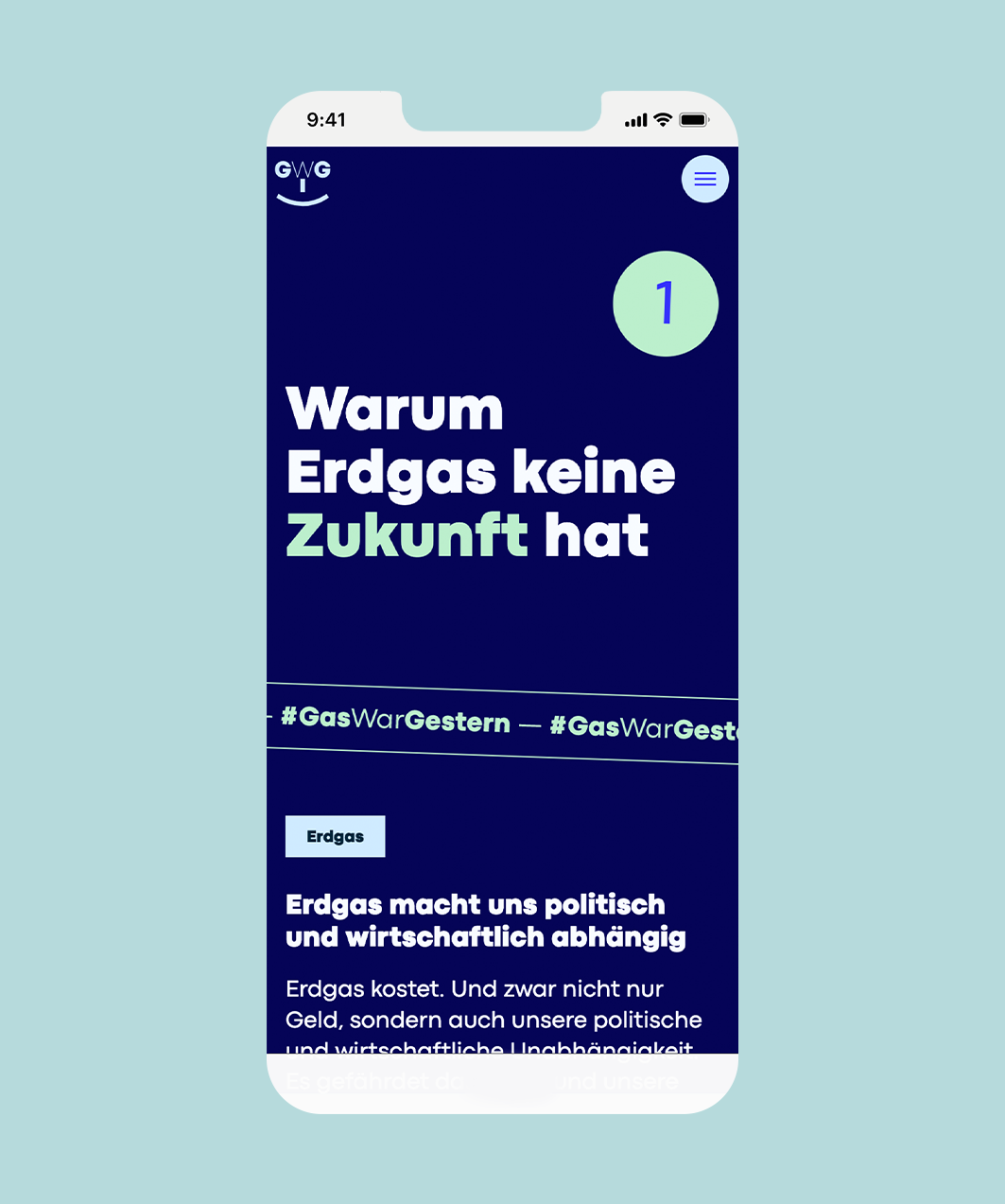 Gas War Gestern is a Campaign that counts with a Landing Page as a information Hub – which showcases several research articles on the topic of the Future of Energy. The campaign came out during a period of gas prices inflation and a political context of redirection towards renewable energy resources. Its purpose is to continuously educate the users on topics of clean energy and the consequences of natural gas consumption. Due to the heavy text pages and lack of imagery resources, the brand was thought to be more graphical and colorful. All compoenents are visually accessible and animated graphic elements were introduced to counterbalance the staticness of the text blocks.
