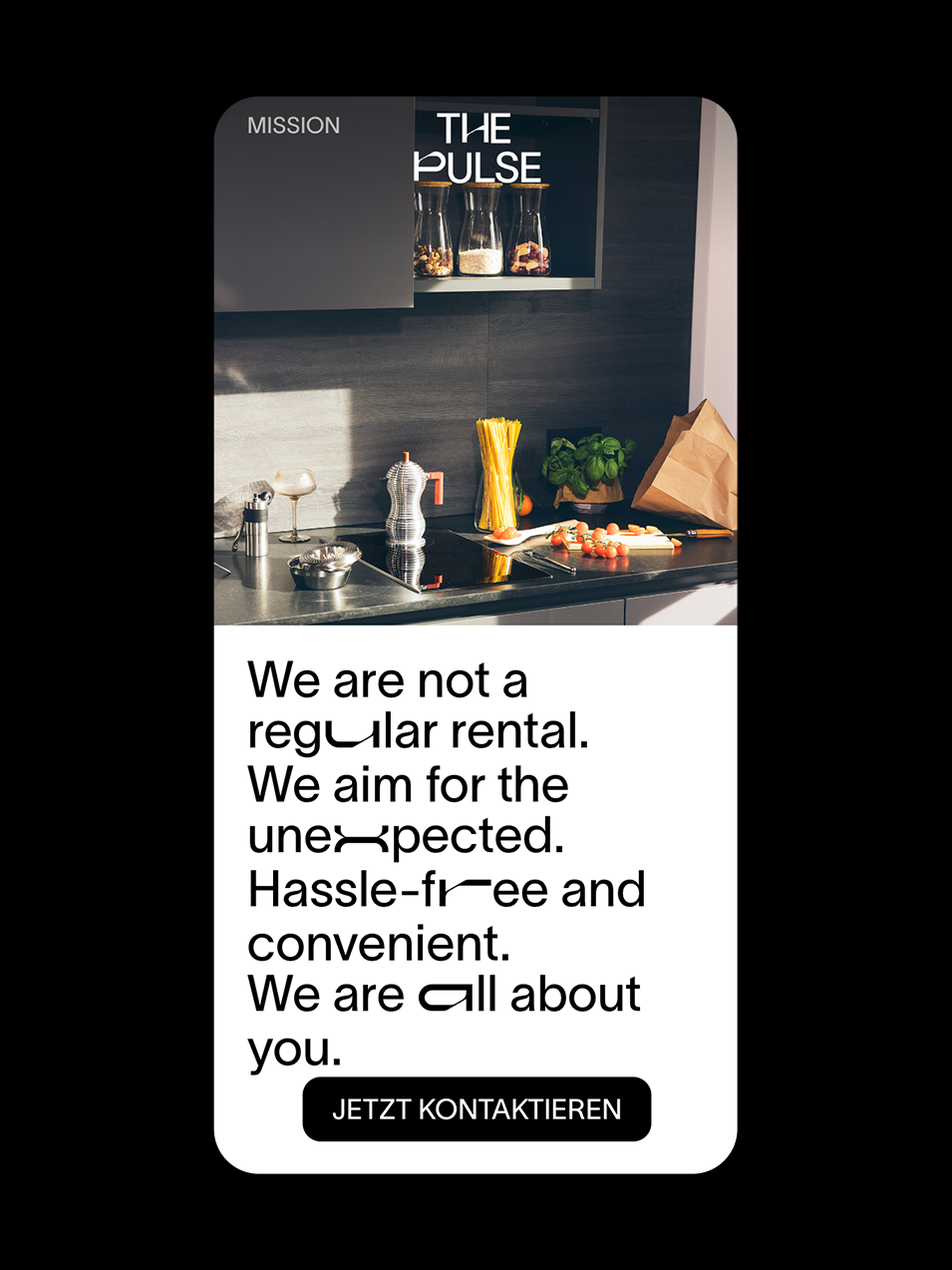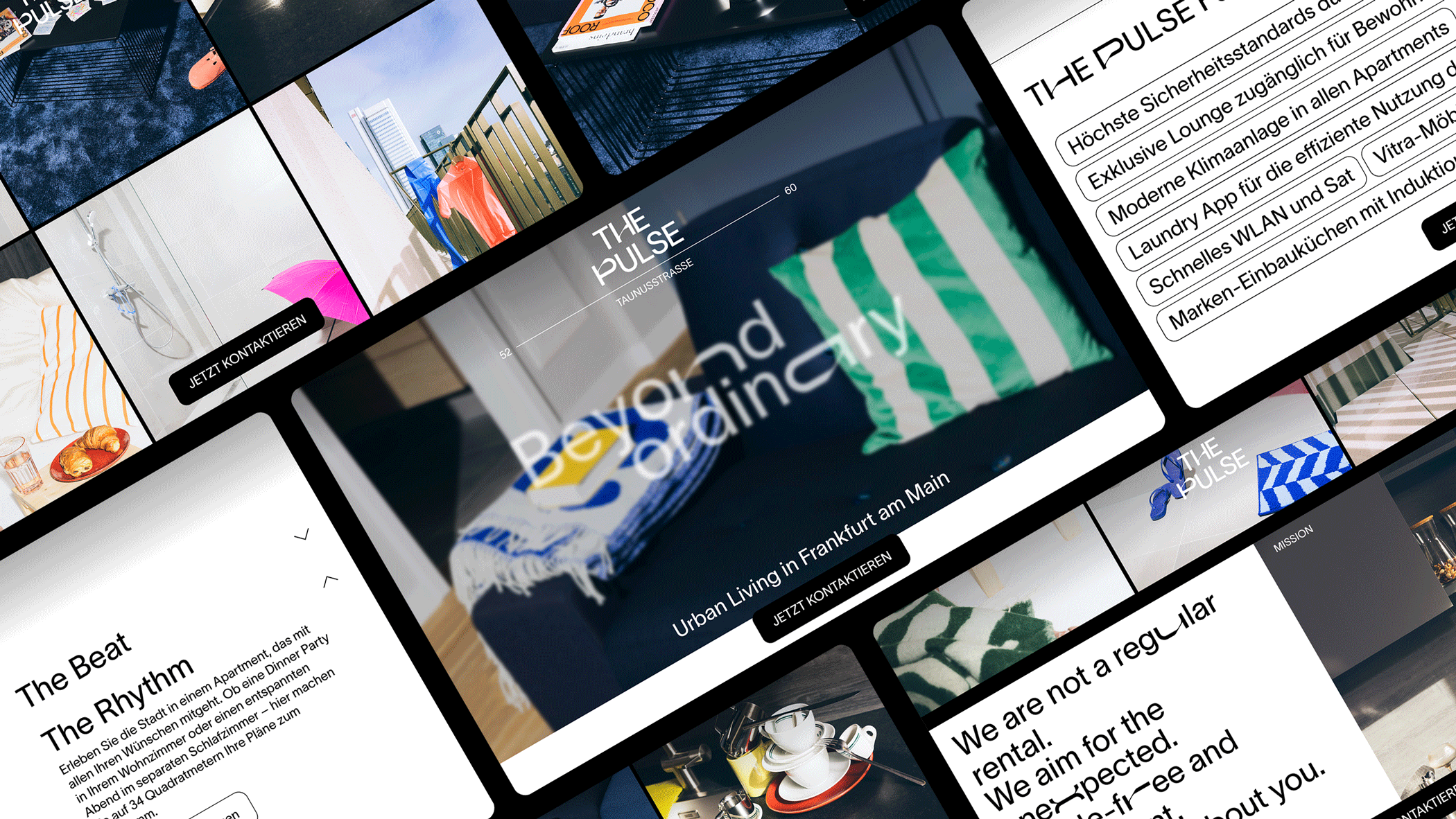 For a rebranding and website relaunch for this luxurious coliving space in Frankfurt, we conducted a photoshoot that was used on the Homepage. The Art Direction process was planning a visual style, lightning and narrative, creating scenarios with prompts that were chosen to detail. For the conceptualized narrative we created a user persona based on the most likely target group — young corporate workers from the banking and business industry. With this holistic approached, we aligned UX methods to Art Direction, thinking of the brand as a whole. As a main goal we wanted to explore relatable experiences in spaces that tend to be traditionally showcased as emptied and without a human presence.